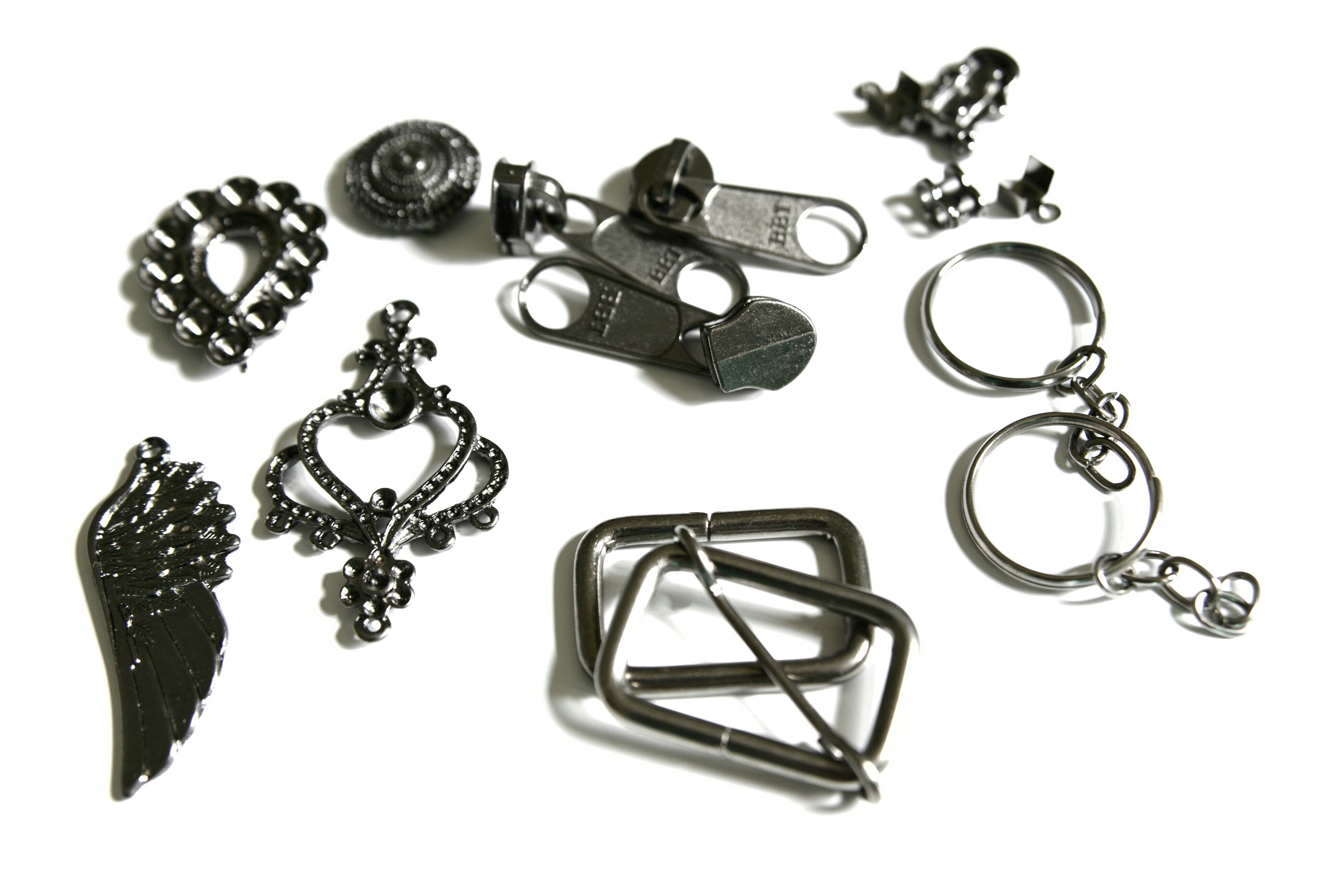 | Peças de aviamento como zíperes, botão, argolas, meia-argolas, etc | Rotativo/Gancheira | Cobre, Latão, Bronze (Ligas) |